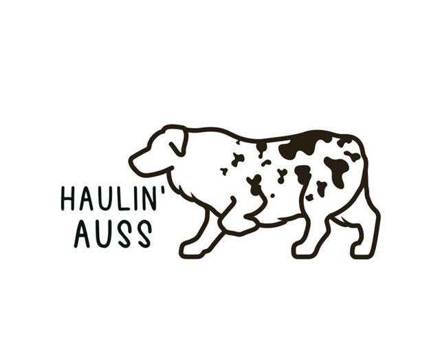Get ready to hit the road with this adorable Haulin' Auss decal featuring a Merle Coat Australian Shepherd. Perfect for any Aussie lover, this decal adds a touch of cuteness and personality to any car. Show off your love for the breed while on the go with this unique and playful decal.